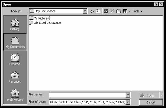 Use the Look in: box to select a different drive, directory or folder to find a workbook.