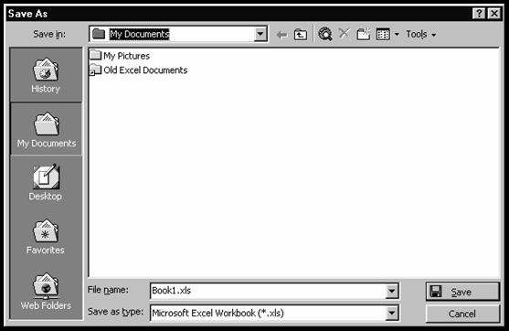 If you have not saved the workbook previously, or if it was opened as Read-Only, the Save As dialog box appears.