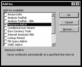 Ø   17317i84r ;   17317i84r ;   17317i84r ;   17317i84r ; To set up Excel so that it automatically saves your work, choose Add-ins from Tools and check AutoSave Add-in. Click on Ok