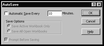 Ø   17317i84r ;   17317i84r ;   17317i84r ;   17317i84r ; Choose AutoSave from Tools and specify how often to save, what to save, and whether you should be prompted before saving.