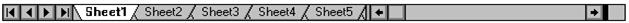 Click to scroll the display of tabs to the right or left by a tab. To scroll by several tabs hold down Shift and click. |
