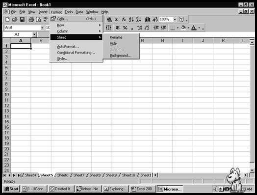Note: If you do not see the tabs in the workbook, choose Options from Tools, select View, then select Sheet tabs