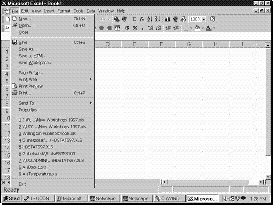Open a workbook recently worked on from the list at the bottom of File. If the list does not appear on File, choose Options from Tools; select the General tab and select Recently Used File List.
