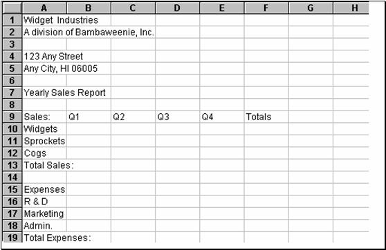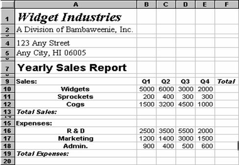 When you sort data with the sort tools on the Standard toolbar, you identify the sort key by placing the active cell in the column as the basis of the sort. A sort key identifies which column to sort by. For example, if you want the records sorted by last name, place the active cell in the column containing the last names. Ø   17317i84r ;   17317i84r ;   17317i84r ;   17317i84r ; Open a new spreadsheet: File, New then save as a:names. Move to the next Sheet in your Workbook and type in the following data: