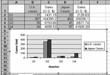 The embedded chart is always available when the sheet is active, and the chart is printed with the data when you print the sheet. The chart data is still linked to the source data and is automatically updated when the sheet data changes.