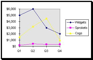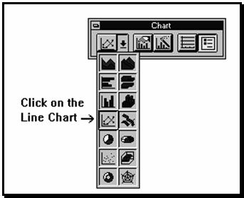 Ø   17317i84r ;   17317i84r ;   17317i84r ;   17317i84r ; Select the range of sheet cells that contain the data you want to plot, including any sheet column or row labels to be used in the chart. Do not select empty cells outside the rows and columns you want charted. Ø   17317i84r ;   17317i84r ;   17317i84r ;   17317i84r ; Click Line Chart on the Chart type button on the Chart toolbar.