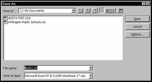 The first time you save a spreadsheet, the Dialog Box will ask for a name for the spreadsheet and the drive and directory in which it will be saved. Save this file on the a: drive. Ø   17317i84r ;   17317i84r ;   17317i84r ;   17317i84r ; Type a:Widget. Click on OK to save the file to disk. Ø   17317i84r ;   17317i84r ;   17317i84r ;   17317i84r ; If it asks you to replace, click on yes. Ø   17317i84r ;   17317i84r ;   17317i84r ;   17317i84r ; You can also click on the directories in the Directories window to choose the destination.