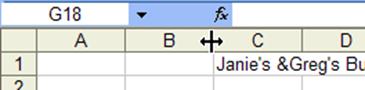 Slowly move the mouse arrow to the right edge of the B cell (between the B and the C). The cursor will turn into an arrow pointing right and left with a small vertical line in the middle (see arrow below). Hold down the left mouse button and move (drag) the line to the right.
