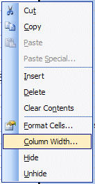 Column Width. and type in 15 and click-on OK. This is another way to widen a column.