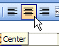 Notice again how SEPT is automatically left aligned. Logically, since you are using Excel, the English version, the text is left aligned so that all of the text entries will line up nicely in the column cells. We would like to center SEPT in cell C3. Click on cell C3 to "mark" the cell. One way to center SEPT is to simply click-on the Center button in the button bar at the top of the screen. Make sure that you are ON cell C3, then click-on the center button (see image above right). You'll notice that SEPT is now centered in cell C#.