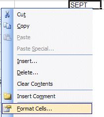 Here is another way to center SEPT. Click right on cell C3. Then click on Format