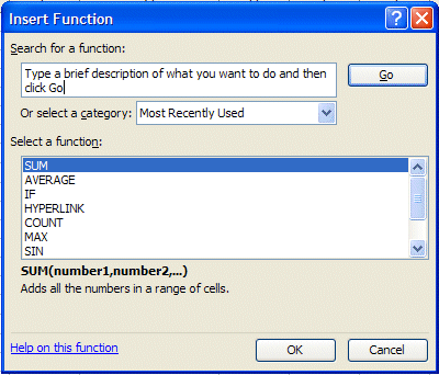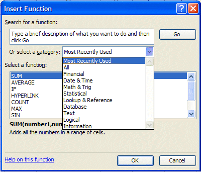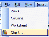 Before we do this there are a couple of essential steps. First we have to tell an Excel 2003 "Wizard" what we want to chart and then were we want the chart to go.
