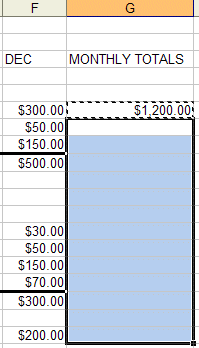 If your spreadsheet does not look exactly like the one above, please try again. This is a bit tricky and it often takes even experienced spreadsheet folks a couple of "tries" to get the highlighting just right.