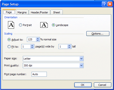 Many folks also ask about how to place gridlines and show the row and column headings (A, B, C and 1, 2, 3) in their spreadsheet printouts. This feature is located on the Sheet tab in the Setup screen menu.