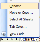 If you would like to have logical names for your Excel 2003 spreadsheet tabs - rather than Sheet 1 and Chart 1, we'll now show you how to do this.