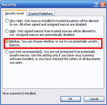In the window that pops up, select "Medium" as your security setting and click OK.