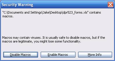 Keep in mind that you only enable the Macros if you are sure that the document is safe. If you are asked to enable Macros by an unknown document, be sure to select "Disable Macros."
