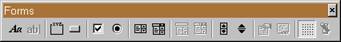 Now move back to your worksheet, probably Sheet1. If the "Forms" toolbar is not visible, right-click on the menu and select it. You will see a group of controls like this: