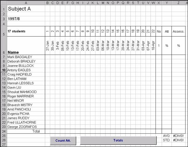 Finally, you need to produce a running total of the attendances for each student in the last column, and the total number of classes to date.