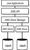 Figure 1.1 shows the architecture of the JDBC. The DriverManager class is used to open a connection to a database via a JDBC driver, which must register with the DriverManager before the connection can be formed. When a connection is attempted, the DriverManager chooses from a given list of available drivers to suit the explict type of database connection. After a connection is formed, the calls to query and fetch results are made directly with the JDBC driver. The JDBC driver must implement the classes to process these functions for the specific database, but the rigid specification of the JDBC ensures that the drivers will perform as expected. Essentially, the developer who has JDBC drivers for a certain database does not need to worry about changing the code for the Java program if a different type of database is used (assuming that the JDBC driver for the other database is available). This is especially useful in the scenario of distributed databases.
