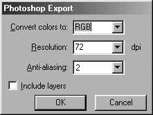If you have chosen Adobe Photoshop 5, click the Setup button. This opens the Photoshop Export dialog box