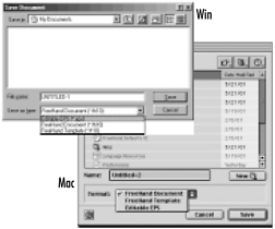 Menus, Icons or Keyboard Commands?FreeHand offers you different ways to activate commands. For instance, to open a new document you can choose the command from the menu bar (File > New), use a keyboard command (Cmd/Ctrl-N), or click the command on a toolbar. So which is the best way to work? It depends. If my fingers are already on my keyboard, I use a keyboard command. If I'm working with the mouse, I usually go to the menu command. Finally, I find it's easiest to click the icon on a toolbar when I use a stylus and pressure-sensitive tablet. As you work, you will discover the way that's best for you. |