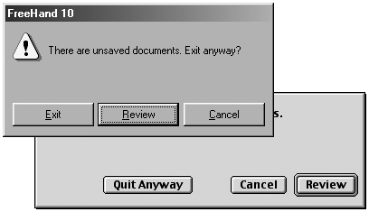 o Click Quit Anyway (Mac) or Exit (Win) to close all documents, discarding any unsaved work.