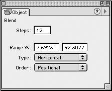 The Rules of Blends (continued)Blends between two spot colors must remain grouped in order to mix as spot colors. If you ungroup, the intermediate steps will be converted to process colors. You cannot blend between objects that have lens fills. You cannot mix different types of gradient fills. For instance, you cannot blend between a linear and a radial graident. Also the gradients must contain the same number of colors. |