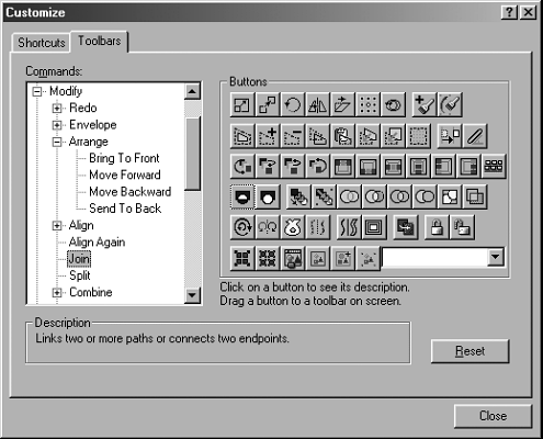 Open the Customize Toolbars dialog box as explained in the previous exercises.