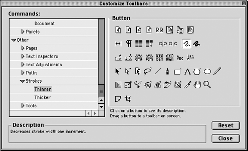 Choose Window > Toolbars > Customize. The Customize Toolbars dialog box appears