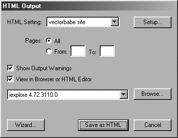 the HTML Output dialog box, click Setup to open the HTML Setup dialog