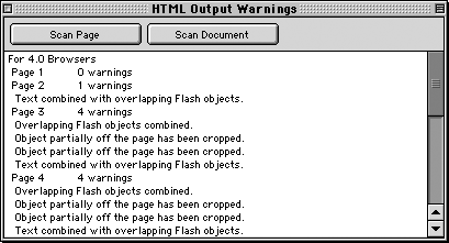 Click either Scan Page or Scan Document. FreeHand displays a list of potential problems with the export to HTML.