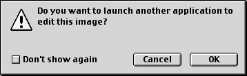 If you have not specified an external editing application, a dialog box appears which asks you to choose an application. This application becomes the default until you change it in the Preferences dialog box.