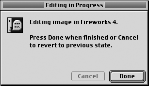 Return to your FreeHand document and click Done in the Editing in Progress dialog box to implement your changes or click Cancel to leave the graphic as it was
