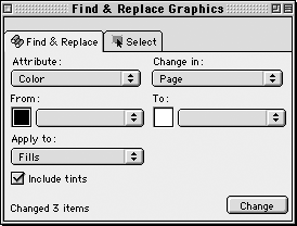 Click Change. FreeHand automatically changes the objects from one set of attributes to another.