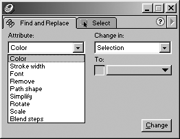 This is one of the most sophisticated features of its kind. I know of no other graphics program that lets you search for such a wide range of objects and then change them into something else. For instance, you can find all objects with a certain shape and change them to another without losing the original fill and stroke settings.