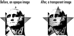 Click Transparent in the Object inspector. This converts the image to black (or some other color) and transparent and lets objects behind your image show through the clear areas
