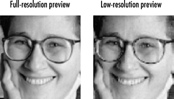 Smart image preview resolution lets you choose low-, medium-, high-, or fullresolution previews of TIFF images