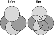 The Transparency command lets you simulate a see-through effect. It doesn't actually make the objects transparent and is not as important now that FreeHand has transparency in the lens fills (see page 184).