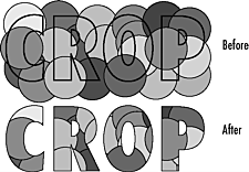 The Crop command allows you to use the top object as a cookie cutter that trims away parts of the path that are outside the top object.