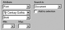 Use the < or > characters to search for point sizes less than or greater than a specific size. (See the sidebar on page 280 for how to work with text attributes.)