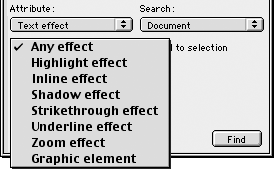 With Style chosen, use the list to select a style that you want to find . (See the sidebar on the previous page for how to work with text attributes.)
