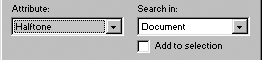 Choose Halftone from the attributes list to select all objects that have a custom halftone applied . (See page 363 for more information on working with custom halftone screens.)