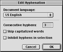 Click the Ellipse (.) button in the Text inspector. The Edit Hyphenation dialog box appears