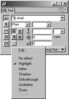 Select the text that has the Inline effect and choose Edit from the pop-up menu. The Inline Effect dialog box appears