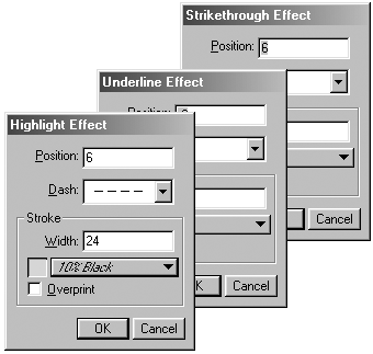 Figure 16. The Highlight, Underline, and Strikethrough effects all have the same settings.