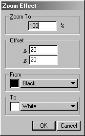 Select the text that has the Zoom effect applied to it and choose Edit from the pop-up menu. The Zoom Effect dialog box appears