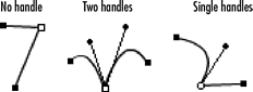 FreeHand provides two types of handles on the levers that come out of the points. The illustrations in this book show the small handles. You can work with the large handles by switching the Preferences settings (see Appendix C