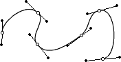 Connector points can have one or two point handles. When a connector point occurs between a straight-line segment and a curved segment, there is only one point handle, which runs along the same direction as the straight line. When a connector point is between two curved segments, there are two point handles which are constrained by the position of the points on either side of the connector point.