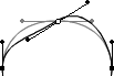 Curve points are anchor points that make a smooth, curved transition along the direction of the path. A curve point has two handles that extend out from both sides of the point. However, unlike corner points that may have two handles, the handles on curve points are linked so that as the handle on one side moves, the handle on the other side also moves. The length of the handle governs the shape of the curve